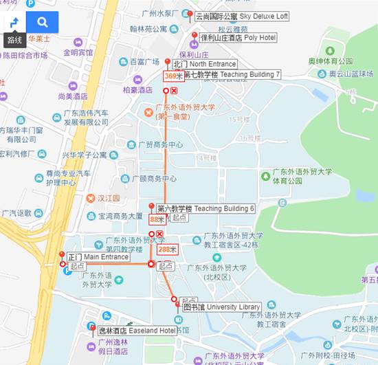 本次会前工作坊将在广东外语外贸大学北校区第七教学楼举办,该教学楼位于北门附近(丛云路50号)。研讨会的全体会议和分组讨论则分别在大学图书馆和第六教学楼举行,离正门较近(白云大道北2号)。因此,如果您乘坐出租车或网约车,请告知司机将车开到相应的大门。
